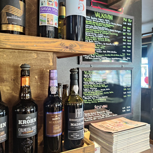 Tarjontamme täydentyy säännöllisesti vaihtuvilla viineillä, joista kerromme ravintolan seinätauluissa. Kysy rohkeasti henkilökunnalta suosituksia – joskus laseihin löytyy jotain erityistä.